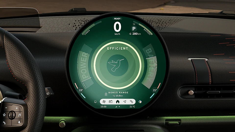 Simply ask MINI: "Hey MINI, activate the Experience Mode Efficient please." "Hey MINI, how far can I go?"